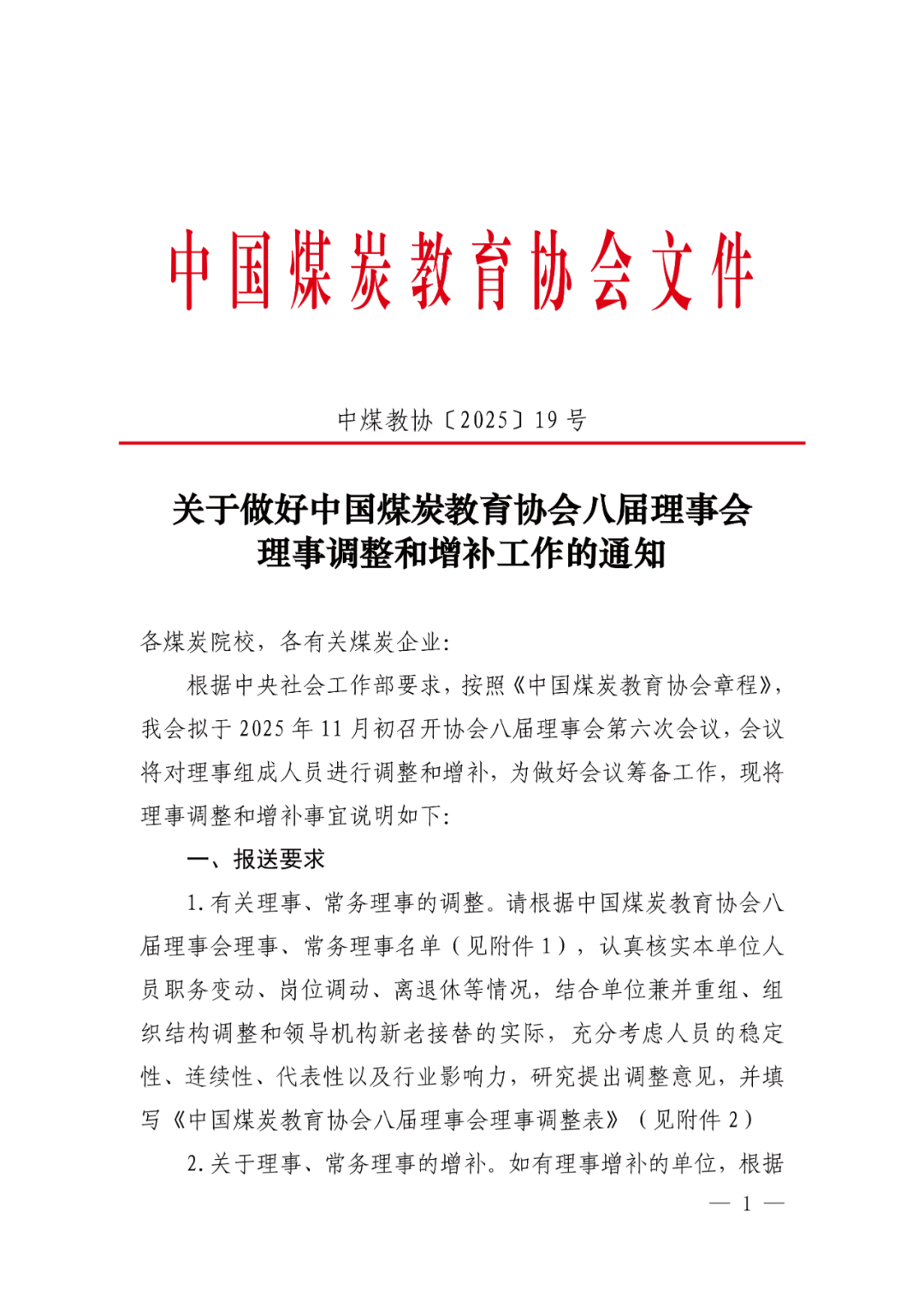 关于做好中国煤炭教育协会八届理事会理事调整和增补工作的通知