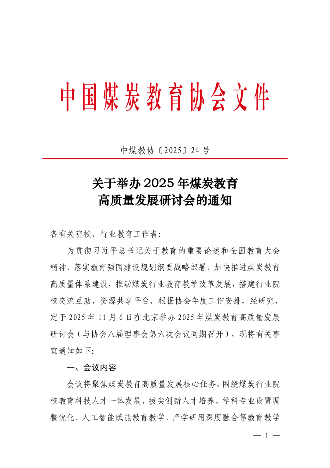 关于举办2025年煤炭教育高质量发展研讨会的通知