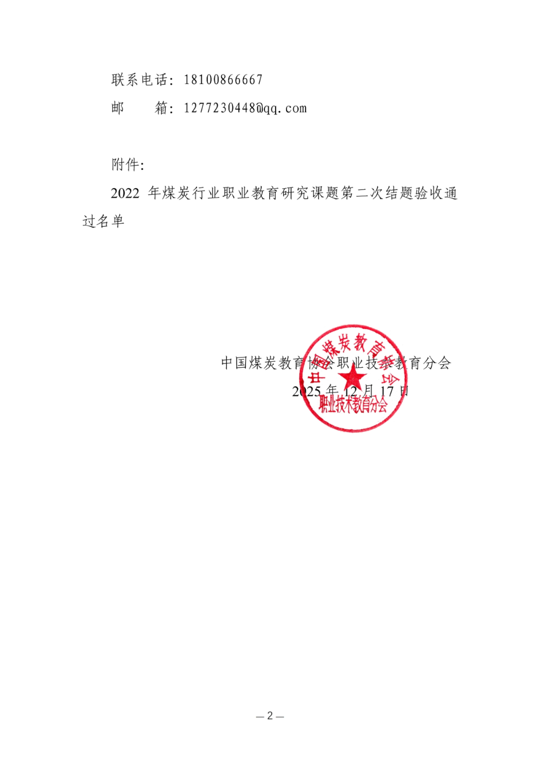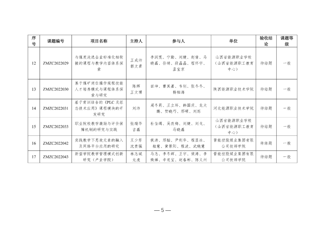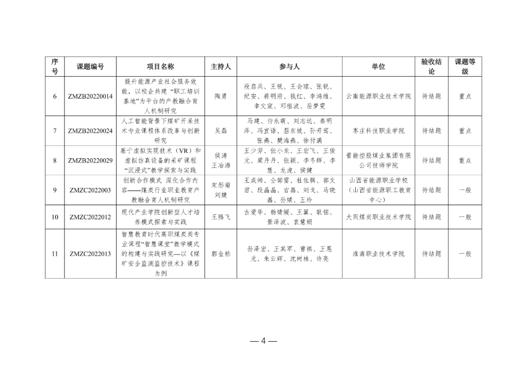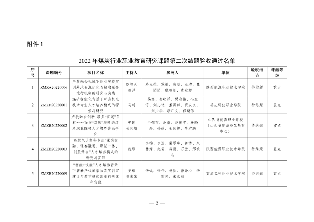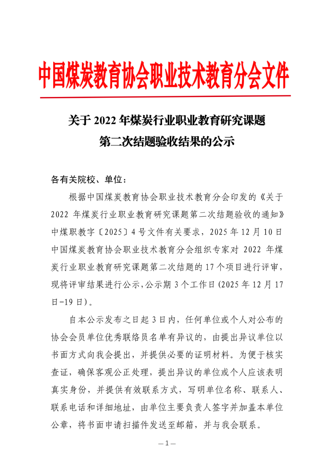 关于2022年煤炭行业职业教育研究课题第二次结题验收结果的公示