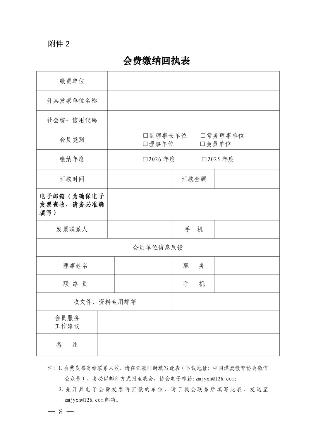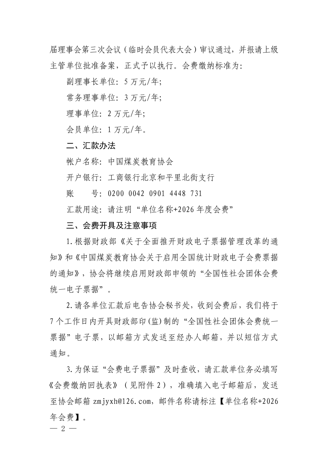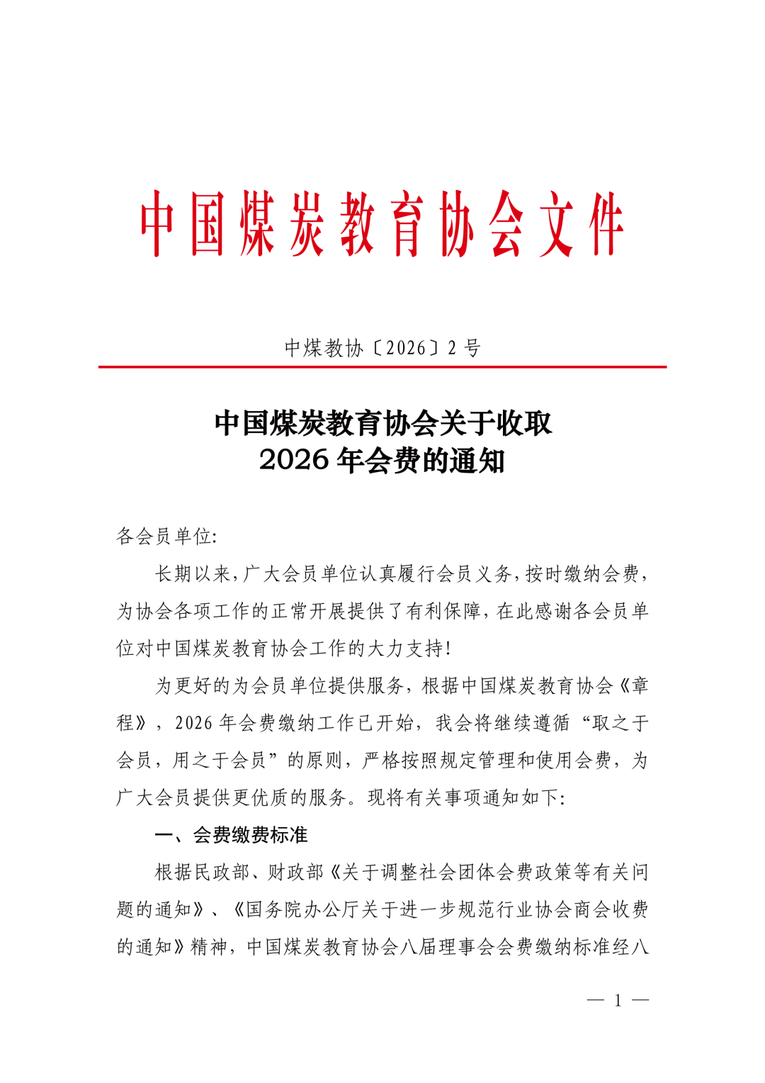中国煤炭教育协会关于收取2026年会费的通知
