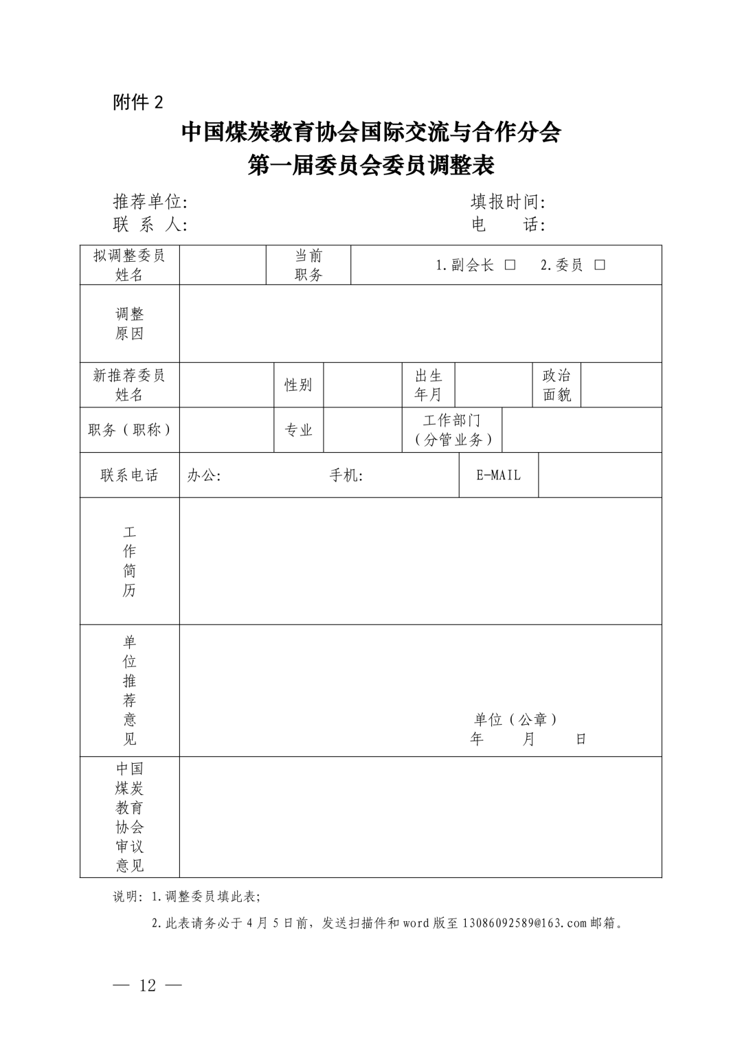 附件2中国煤炭教育协会国际交流与合作分会第一届委员会委员调整表.docx