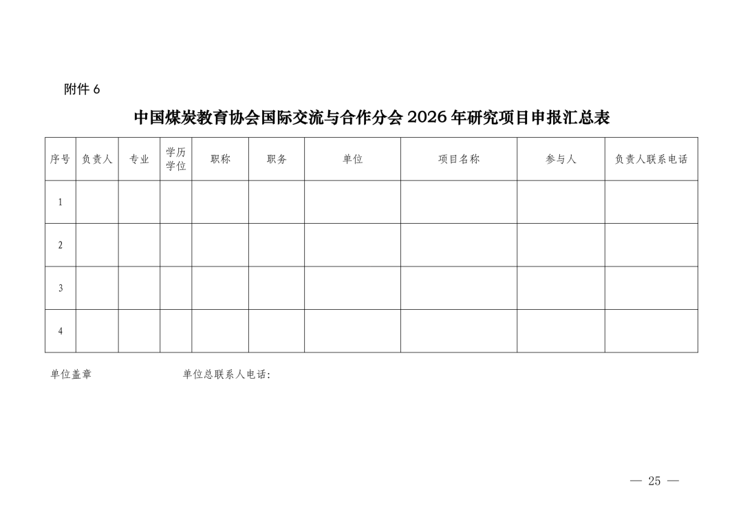 附件6中国煤炭教育协会国际交流与合作分会2026年研究项目申报汇总表.docx