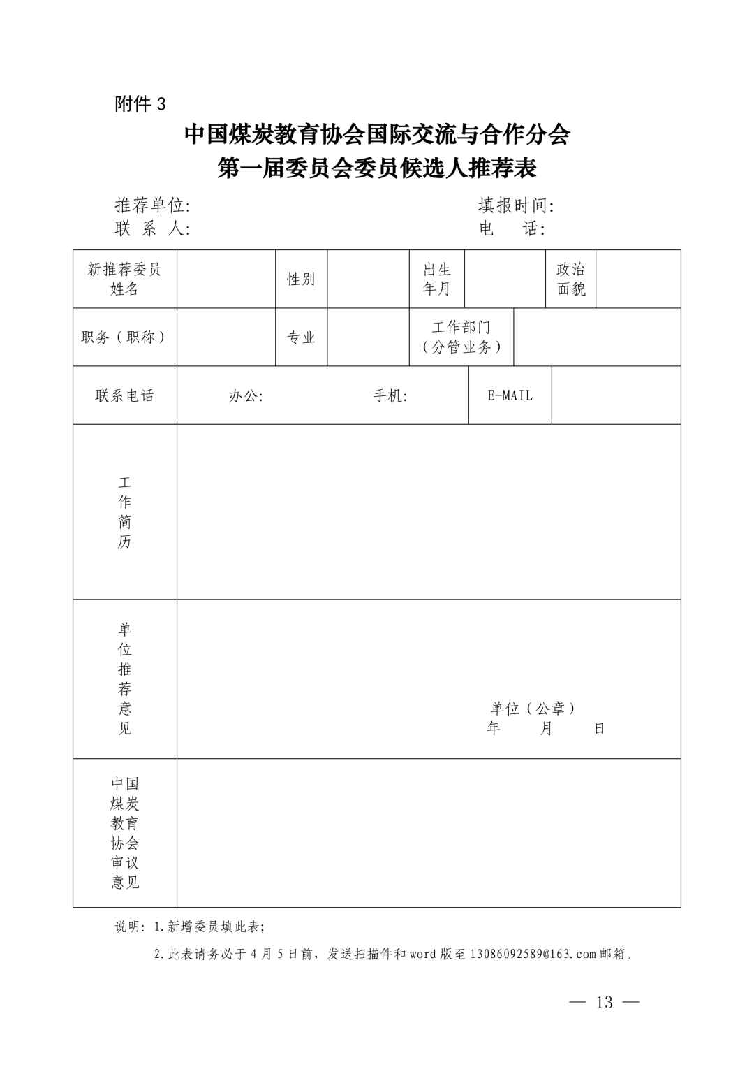 附件3中国煤炭教育协会国际交流与合作分会第一届委员会委员候选人推荐表.docx