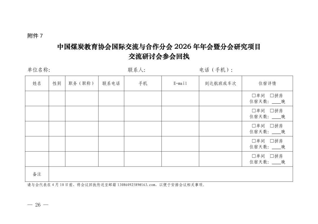 附件7中国煤炭教育协会国际交流与合作分会2026年年会暨分会研究项目交流研讨会参会回执.docx